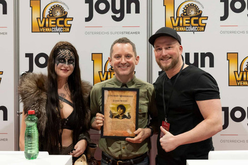 Heuer durfte die VIECC außerdem nicht nur einen, sondern gleich zwei Ehrengäste mit Tolkien-Bezug begrüßen. Neben Craig Parker (Haldir) hat dieses Mal mit Elijah Wood auch der Ringträger selbst aus Peter Jacksons Herr der Ringe Filmtrilogie die VIECC in Wien besucht. Es war für uns also ein ganz besonderes Highlight, den beiden unsere ÖTG Ehrenmitgliedschaft überreichen zu dürfen.